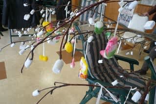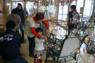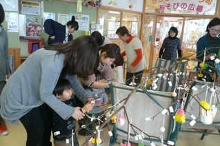 今町子育て支援センターを訪れている子ども達も一緒に飾りつけているのがなんとも微笑ましい