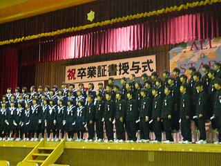 全校生徒218名の生徒全員合唱や卒業生71名の本当に本当に今中生としての最後の合唱は、子どもの数が減って広く感じられる体育館が心のこもった歌声で響き渡りました。