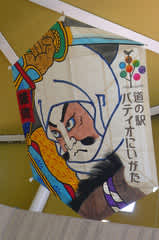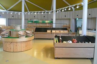 お隣には、野菜などの直売所も・・オープン前で、まだ品揃えはなかったですが、今日は今町の大凧が出迎えてくれました。