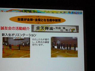 この事業も今年で11回目・・当初、関係者のマスターベーションと酷評する人もいましたが、他校の取り組み・先生や子ども達の一生懸命に発表する姿に感動すら覚えました。寸劇等を披露した学校もあり、ぎこちなさはありましたが訴える力は以前よりはずっと増したとおもいます。継続はちからなり!!です。