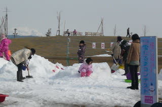 それでも子どもたちは集められた少ない雪のスペースで元気よく雪遊びをしていました。