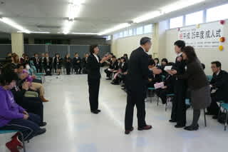 ご出席いただいた副市長から、新成人の希望のお祝い品を一人一人に手渡していただきました。