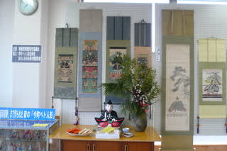 今町悠々に天神様の掛け軸とべと人形伝承会が作成した天神様が飾られていました。