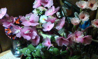 我が家の玄関に桜が咲きました・・といっても母お手製の手芸の桜ですが