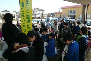 各班に分かれて国道沿いの道のゴミ拾いを行いました。「これは燃えるゴミ 燃えないゴミ」・・子どもたちはごみの分別も学びながらいい汗をかいていました。