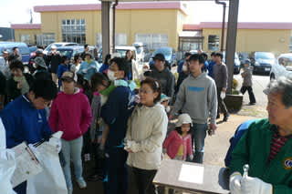 お母さんやおじいちゃんと参加した可愛い子どもたち!トングでつまんだごみを中学生のお兄さんたちの袋に入れて達成感