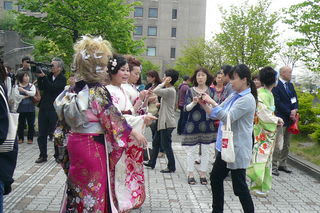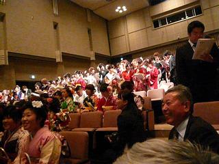 会場のアルカディア前は、振り袖姿や羽織袴・凛々しくびっしっとスーツにをつつんだ新成人で華やいでいました。