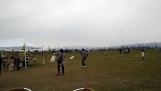 広場では親子で・お孫さんと凧揚げが行われていました。