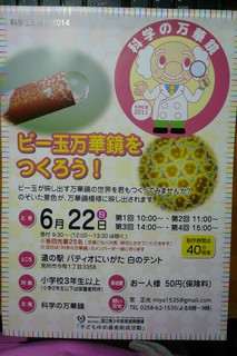 来月22日に「道の駅 パティオにいがた 白のテント」で開催される科学工作教室「ビー玉万華鏡をつくろう!」です。