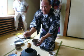 国際交流協会の団結・結束力の良さで、会長を初め協会員の協力のもと、浴衣の着付けや茶道・書道を体験していただきました。