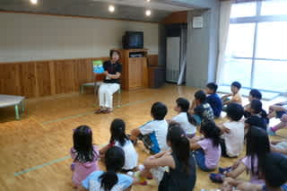 子どもたちは静かに聴いてくれましたが、始業前の20分・・絵本を読む前にねむい人とたずねたら、なんと半数近くの子どもの手が上がりました