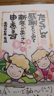 市外に住む高校時代のクラスメイトから可愛い賀状も届きました。