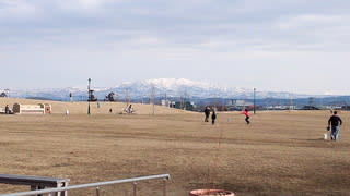 休憩に寄ったパティオにいがた、お天気に恵まれ山々の残雪が光り輝いて・・きれい