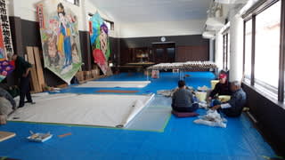 右の方々はのりをつくる作業・・ずっとずっと受け継がれてきた大凧づくり。