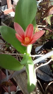 我が家のプランターに小さな・小さなチューリップを見つけました。