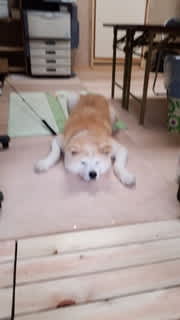 Kさん所のわんちゃん、名前を忘れてしまったけれど、おとなしくてこのくつろぎよう