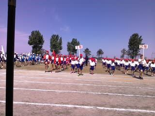 今年の大運動会のスローガンは・・「輝け友情 燃やせ勇気 駆け上がれ 優勝への道!」
