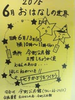 6月のおはなしの世界は、第二土曜日の13日・・このチラシもメンバー手作りです