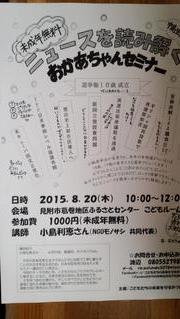 ご案内です・・ 2015年7月23日 最終更新日時 : 2015年7月23日 s-shizuko ニュースを読み解く「お母ちゃんセミナー」が8月20日 葛巻地区ふるさ通過・安保法制中身がよくわからない! TPP日米事務レベル協議再開などなど、私たちの暮らしに関係する政治の問題、何でも聞きましょう。 午前10時~12時まで・・参加費1,000円(未成年は無料) 本やおもちゃ・遊具も用意されています。 お子さん連れで是非参加してみてください。 お問い合わせ:お申込み先は・・渡辺(子どもたちの未来を守るみつけの会)まで。 080-5527-9832 \ 最新情報をチェック /