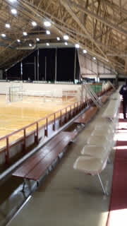 耐震補強工事が終わった見附市総合体育館に武道館、トイレやアリーナ・壁などがきれいにリニューアルされ明るくなりました。