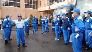 自力避難が難しい人を避難させる訓練など、屋内退避指示発令から解除まで一連の流れを確認しながらの訓練でした。