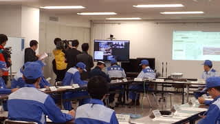 対策本部設置訓練から、エリアメール等を使っての全市屋内退避準備情報発令・新潟県やオフサイトセンターを結んでのテレビ会議