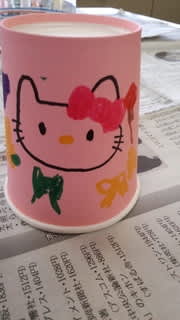 子どもたちの個性ある紙コップけん玉ができました。