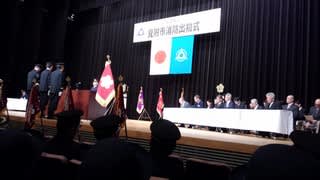 式典で式辞や訓示・祝辞のたびに、起立して敬礼する消防団員の姿はとても凛々しかったです。