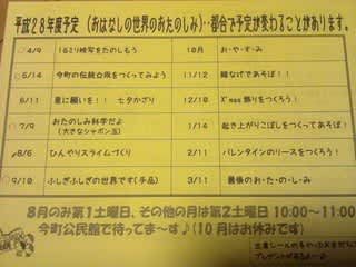 おはなしの世界新聞の裏面には、読み聞かせのあとのお楽しみ年間予定を入れておきました。