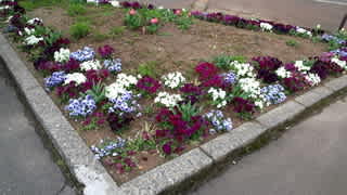 市役所駐車場の一角のポケットパーク、きれいな花々が市民を出迎え・送ってくれている。
