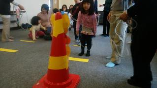 お話しのあとには、2チーム(きいろチームみどりチーム)に分かれての輪投げ競争、5セット対戦して総合点を競いました。