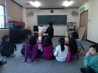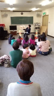 メンバー集合9時30分おはなしの世界10時スタート・・なのに早くから子どもたちは今町公民館視聴覚室前で待っていてくれました。