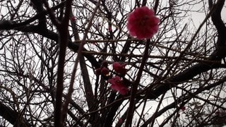 市役所正面のマイリンケ市からの記念樹、紅梅の何輪かが花開きました。