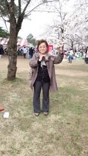 子どもの誘いで、写真の夫を連れて長岡の悠久山にお花見に行ってきました。