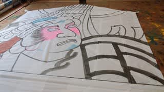 パティオにいがたにほど近い大凧伝承館では、来月の合戦に向けて大凧の製作が進められています。