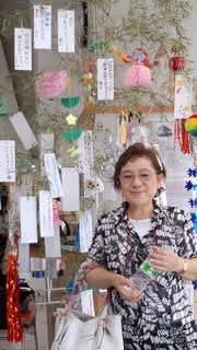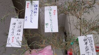 ネーブル見附の七夕飾りに子どもたちの願い事が書かれていました。