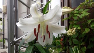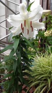 Мさんからいただいたユリの苗を鉢植にしていたところ、今日カサブランカが大輪の花を咲かせました。