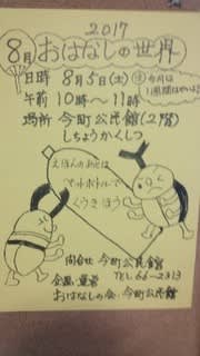 今町公民館との共催事業「8月のおはなしの世界」は一週間早まります。