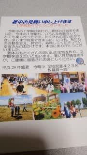 一学期が終わって、おはなしの会へのお礼を兼ねた暑中見舞いのハガキです。