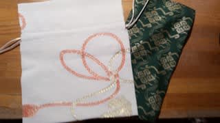 長岡在住の川〇さんからひと針ひと針丁寧に縫った巾着が贈られてきました。