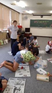 絵本のあとはペットボトルを使って、手作りの空気砲づくりに挑戦してもらいました。