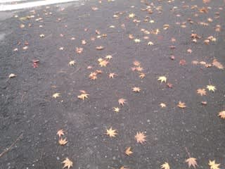 市役所駐車場にもみじの落葉が・・
