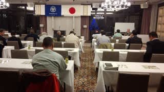 今日の講話者は久住見附市長、見附にある広がる自然・きれいな空気、それらを生かして住んでよかったと思える街づくり。