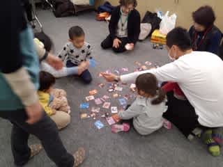 絵本の後に楽しんだ「かるたとり」でも、小さなお子さんを気遣ってくれる小学生のお姉ちゃんたち・・