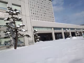 めったに雪が積もらない新潟市も、県庁前はこの通り・・