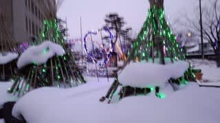 雪ばかりを触っていると疲れてしまうけれど、雪の中のイルミネーションの明かりを見ると少しは気持ちが軽くなるかな
