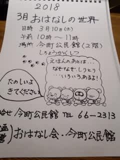 今週の土曜日は、年度最後の「おはなしの世界」です。