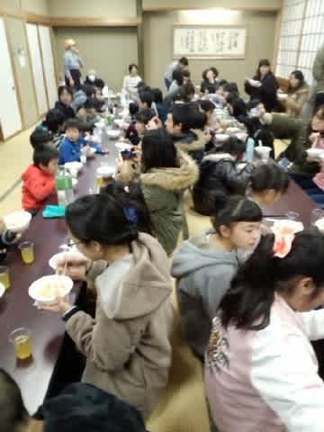 その後には、今町公民館とともに活動してきた「今町未来予想図」の皆さんが作ってくださった「トン汁」に舌鼓を打っていました。