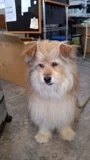 地域の商店街の中に看板犬いる写真屋さんがあります。