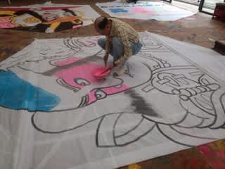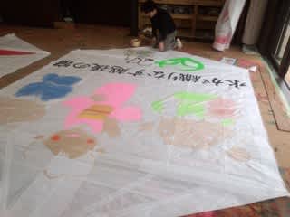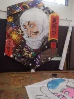 大凧伝承館では、6月の本番にむけて凧制作が行われていました。